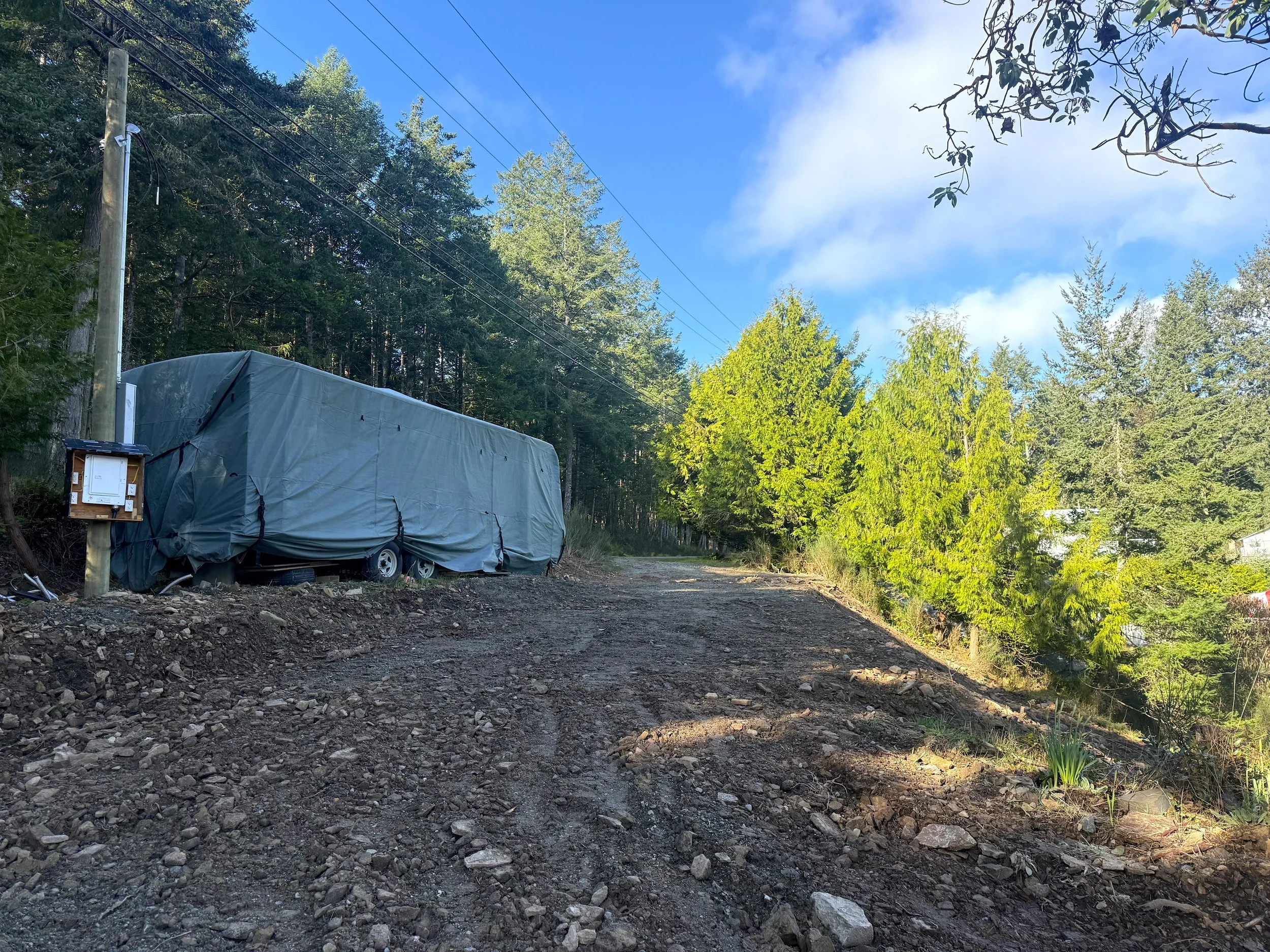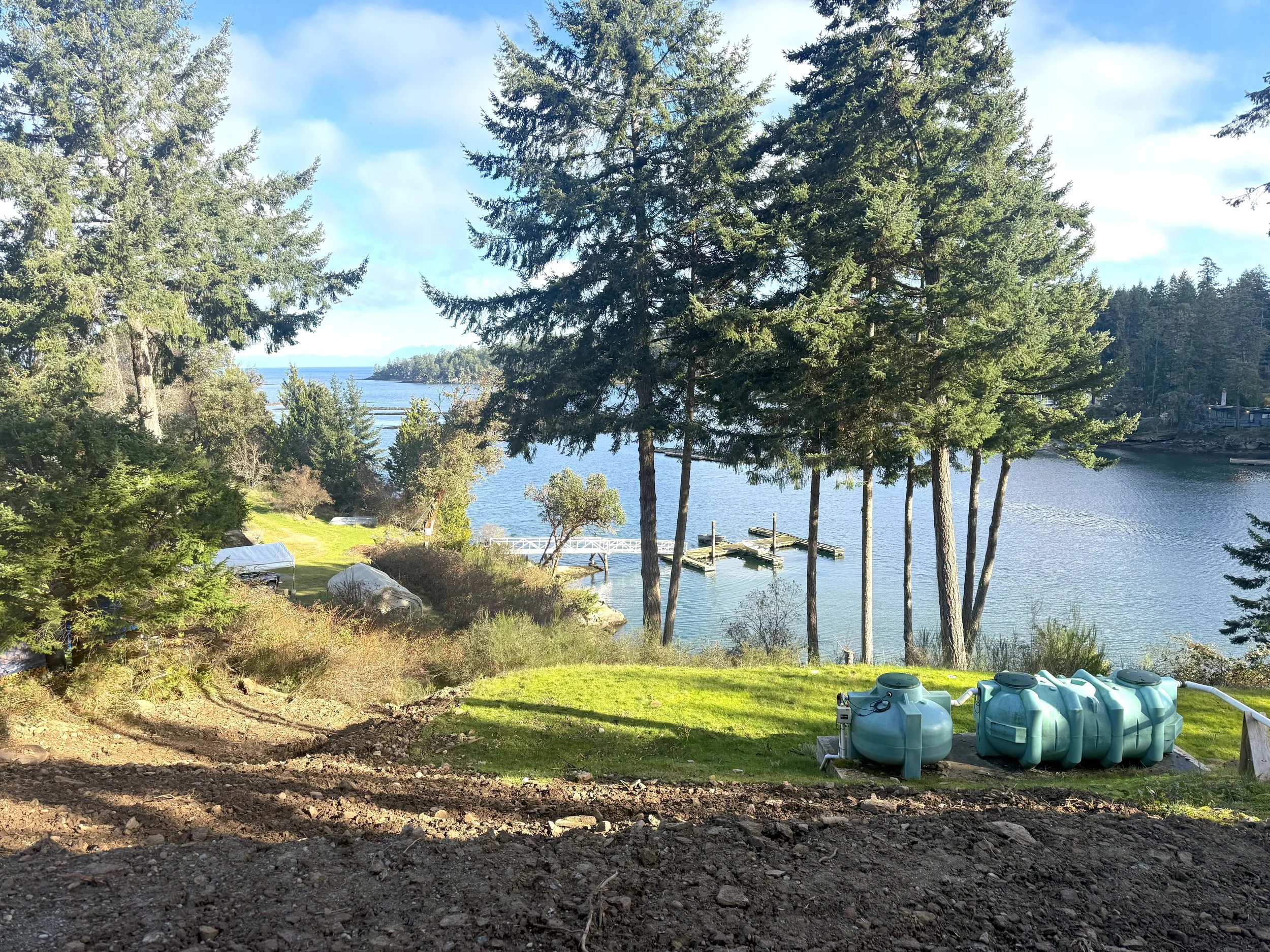 This parcel is build-ready with major groundwork complete: new septic system, community water connection, prepared build site, driveway, and temporary power pole ready for hook up. Due diligence includes house plans, geotechnical/structural assessments, building permit, and a qualified builder ready to proceed.